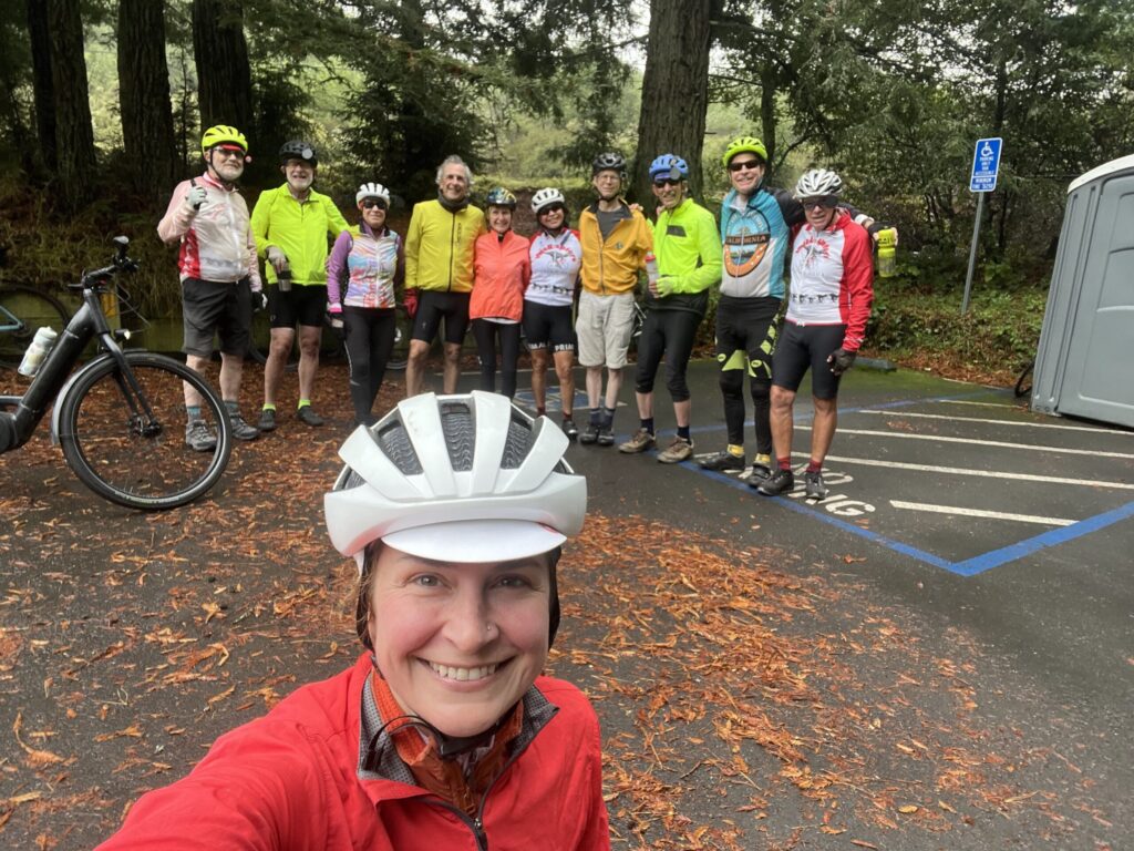 This past Sunday (10/26) 13 riders ignored the fog and mist and enjoyed great comradery riding in the East Bay hills. Most of the group did the Wildcat/El Toyonal descent to Orinda and then enjoyed coffee, pastry and lively conversation at Si Si’s in Moraga, before climbing back over Pinehurst.